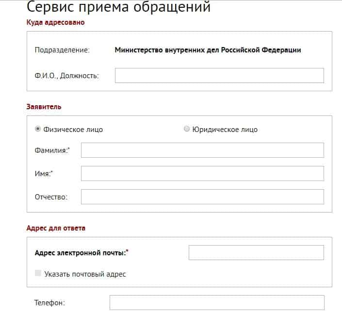 На официальном портале Министерства внутренних дел действует онлайн-сервис, с помощью которого каждый гражданин получает возможность отправить жалобу или заявление в органы МВД по поводу обеспечения защиты жизни и здоровья, противоправных действий других граждан и чиновников, взяточничества, подготовки преступлений и другим правонарушениям. Главное преимущество такого способа – быстрота подачи и экономия собственного времени.