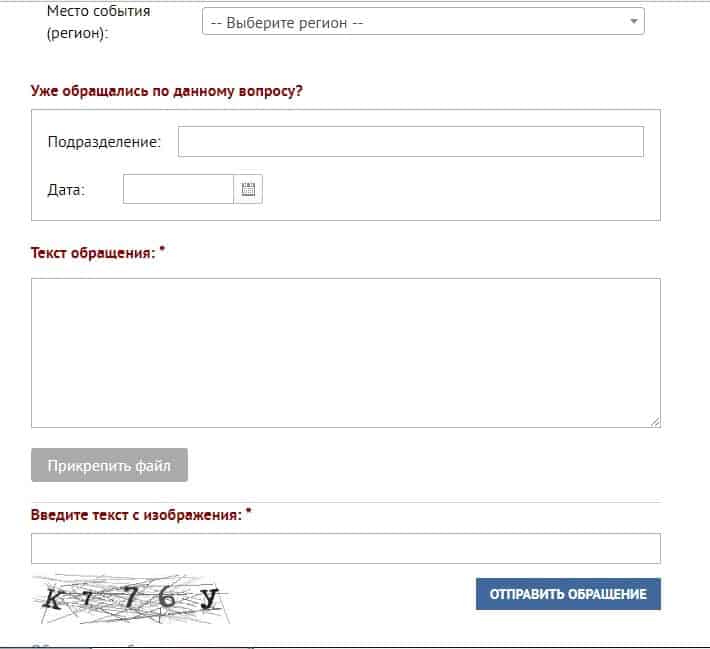 - Указать информацию о предыдущих обращениях: дату и подразделение (если таковые были).