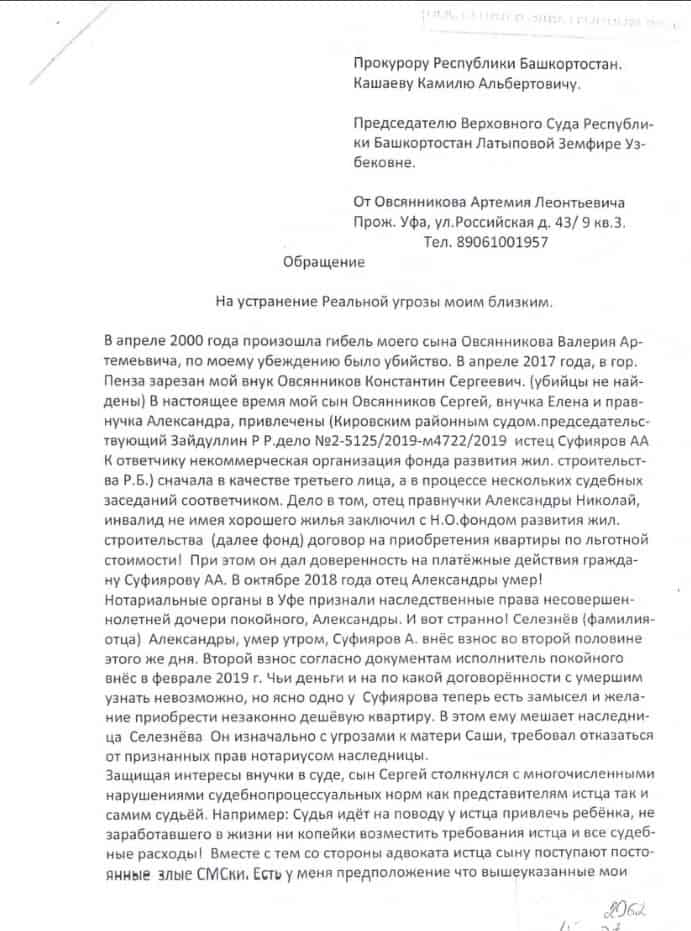 - Первая инстанция по уголовным делам: 450103, г. Уфа, ул.Сочинская,12.