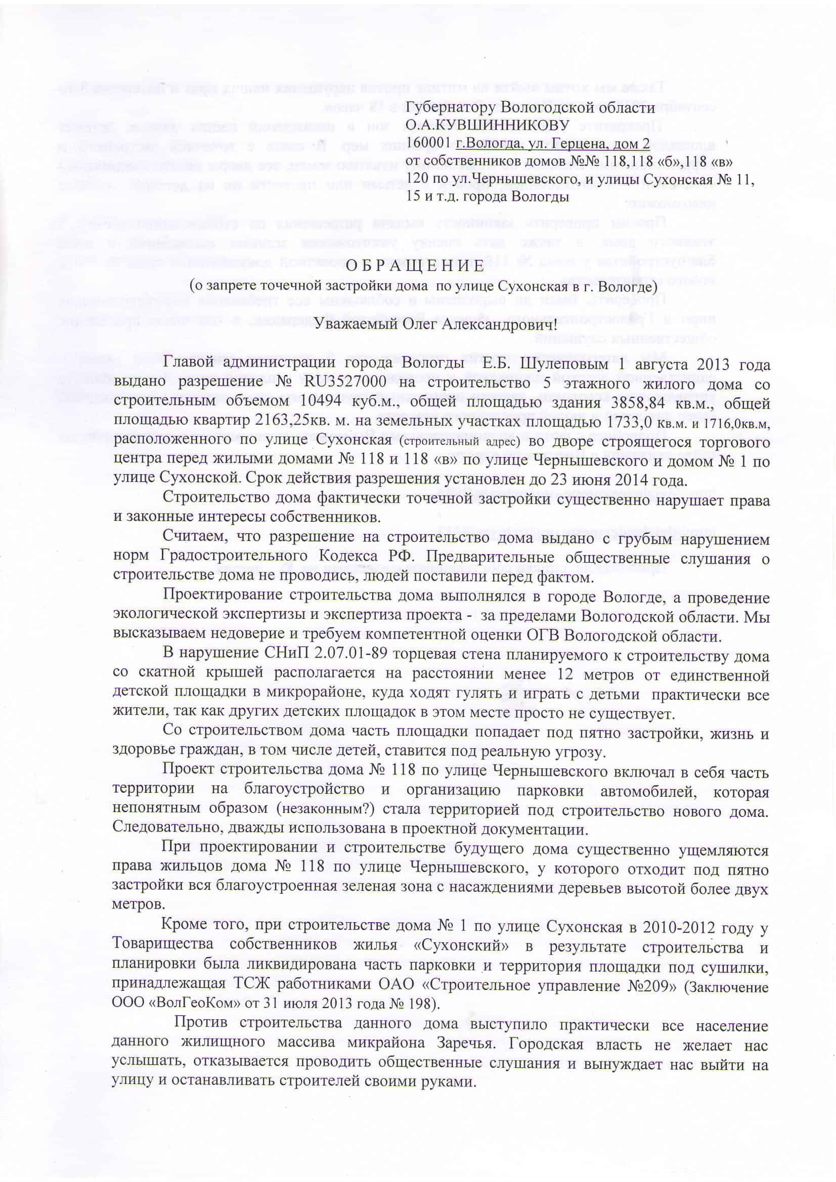 Как написать губернатору Вологодской области Кувшинникову О. А.