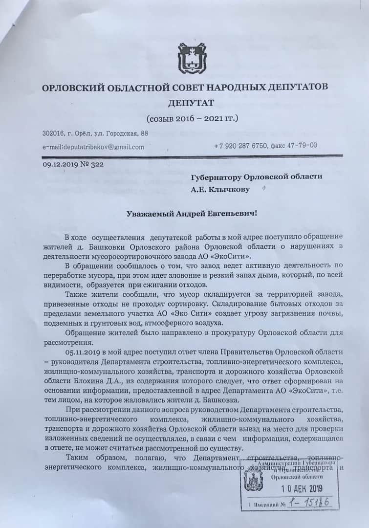 Как написать губернатору Орловской области А. Е. Клычкову