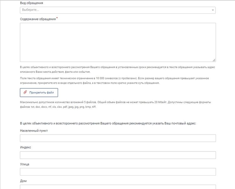 - Объем текста не должен превышать 10 000 символов с учетом пробелов. Обращения, превышающие указанные объемы, можно прикрепить в виде отдельного файла, описывая в поле для ввода текста только основные доводы. Для текстов с большим объемом информации рекомендуется воспользоваться обычной почтой.